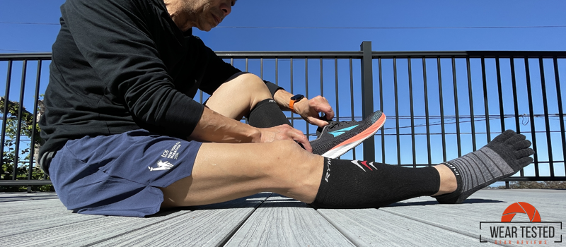 I don’t wear regular socks. I don’t normally wear toe socks unless it is really cold or I’m wearing dress shoes. I like to maximize proprioception and regular non-toe socks also limit my toe splay. But I always wear compression calf sleeves or compression socks whenever I run.