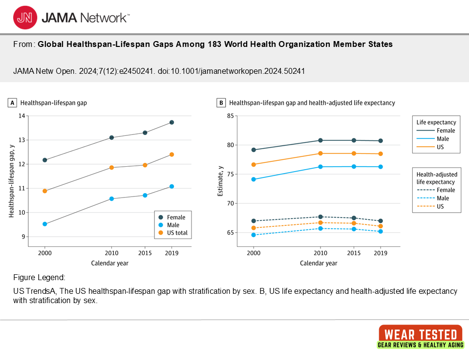 Garmany A, Terzic A. Global Healthspan-Lifespan Gaps Among 183 World Health Organization Member States. JAMA Netw Open. Dec 2 2024;7(12):e2450241. https://doi:10.1001/jamanetworkopen.2024.50241
