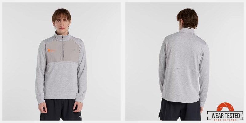 A gift of warmth and performance, this versatile top uses NB HEAT™ technology to wick away moisture and retain heat even on brisk winter mornings. The half-zip design is paired with a zippered chest pocket for stashing essentials, while the official race branding adds iconic appeal. The soft, recycled polyester blend feels plush, making this piece a post-run staple or everyday favorite.