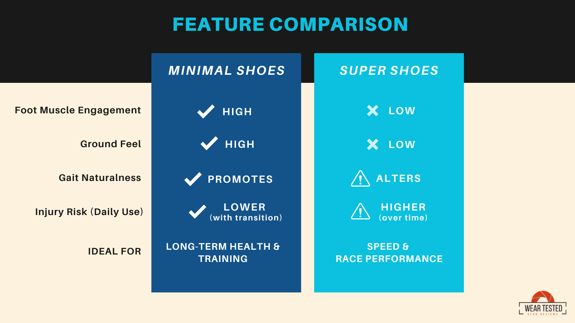 While carbon-plated super shoes have a place in race-day performance, they shouldn’t be your everyday choice. The evidence favors minimal footwear for: