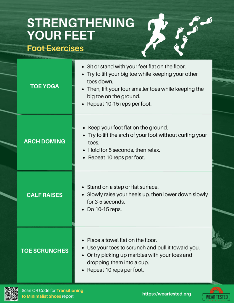 These exercises will improve foot strength, mobility, and endurance, making the transition smoother.
