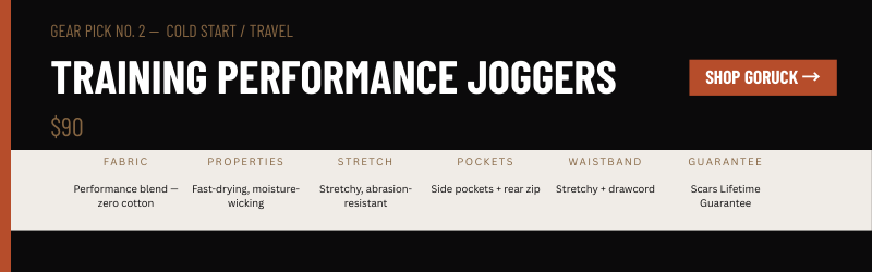 GORUCK, through more than a decade of building gear for Special Forces veterans and the broader tactical fitness community, has been solving this problem longer than almost anyone. The Challenge Shorts, Performance Joggers, and Commando Half Zip aren’t crossover products – they’re purpose-built for exactly this use case, and they show it.