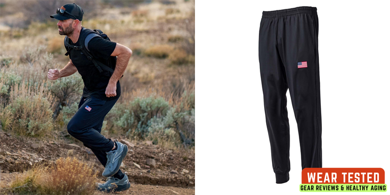 For rucking context: these are the piece you reach for on a 48°F morning start that will climb to 65°F before you’re done. The waistband stretches and drawcord accommodate the layering movement of a ruck stride without bunching or dropping. The rear zip pocket is practically positioned for a phone or a key – unlike side pockets on joggers, it stays put under load.
